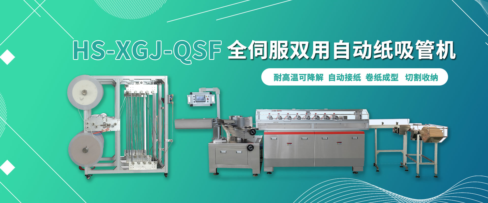 HS-XGJ-QSF型全伺服双用自动纸吸管机是我司为顺应环保大趋势专门研发的产品。该机器集自动接纸,卷纸成型,切割,收纳为一体,采用数控多刀系统,耐高温可降解 自动接纸 卷纸成型 切割收纳,直接产出成品吸管。该机器产出的吸管既能耐100度的高温(常规纸吸管最高为70度),也可进行堆肥降解,对环境毫无污染。